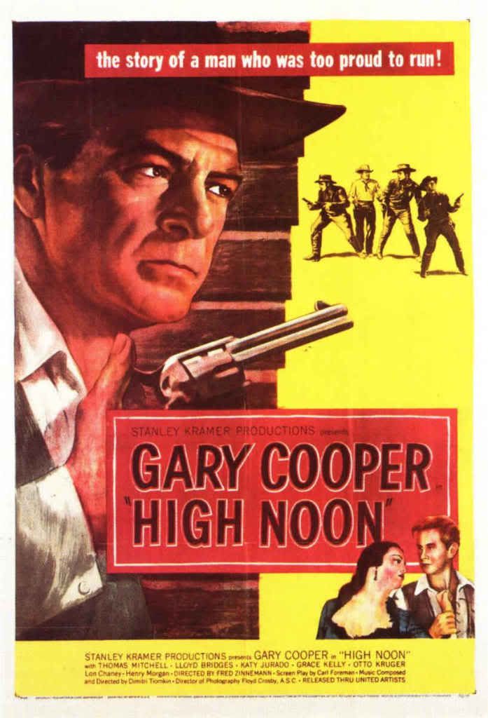 От себя: Хочу представить вниманию очередной вестерн. Хотя как раз-таки от вестерна здесь по большей части лишь видимость. В общем-то банально, шериф хочет сложить с себя полномочия по той причине, что его охомутали, ан нет... каким-то идиотам необходимо было выпустить бандита, которого он засадил лет эдак пять назад, после этого успел покуролесить и с женщиной этого бандита (её, кстати, играет мексиаканская красавица Кэти Хурадо, которая ранее мне нигде не встречалась). Так вот, встреча с этим бандитом должна состояться именно в полдень, а до тех пор бывшему шерифу необходимо собрать команду. И тут начинается уже не вестерн, а чистой воды драма. И в ней заключается вся соль фильма. Город в ужасе прячется от кучки бандитов, состоящих, к слову, из 4-ёх человек. Психология "авось пронесёт" заставляет их уткнуться головой в песок подобно страусам. Фильм раскрывает подноготную человеческого эгоизма, при котором главной задачей является самосохранение. В общем кино оказалось неожиданно хорошим и интересным.